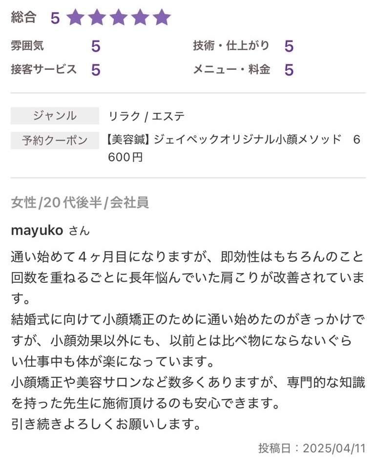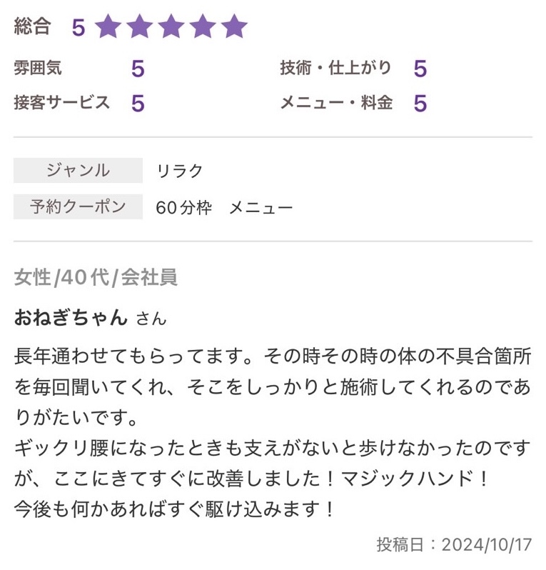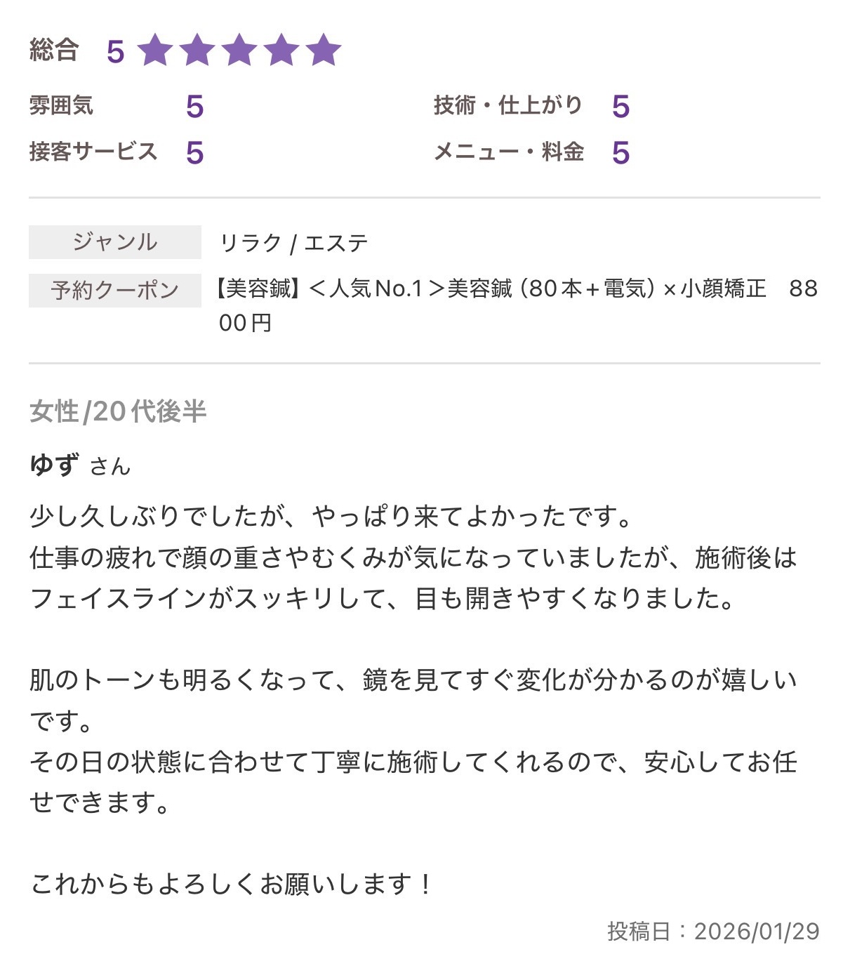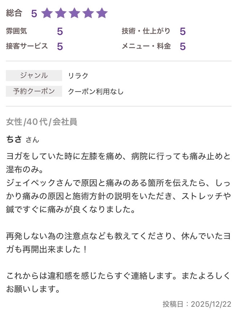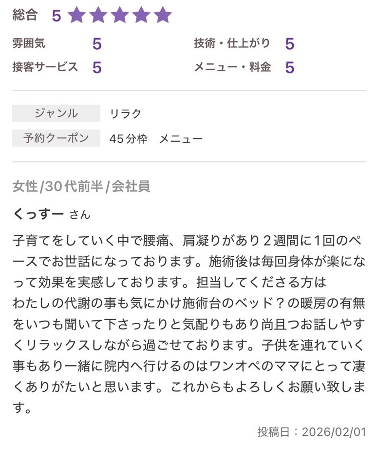 初めての方にも「ここなら安心して通える」と感じていただけるようこれからも一人ひとりの施術に丁寧に向き合ってまいります。