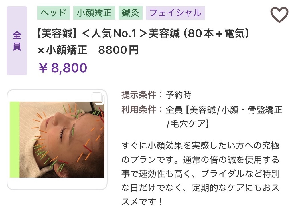 美容鍼・全身鍼灸・整体を組み合わせて施術します。